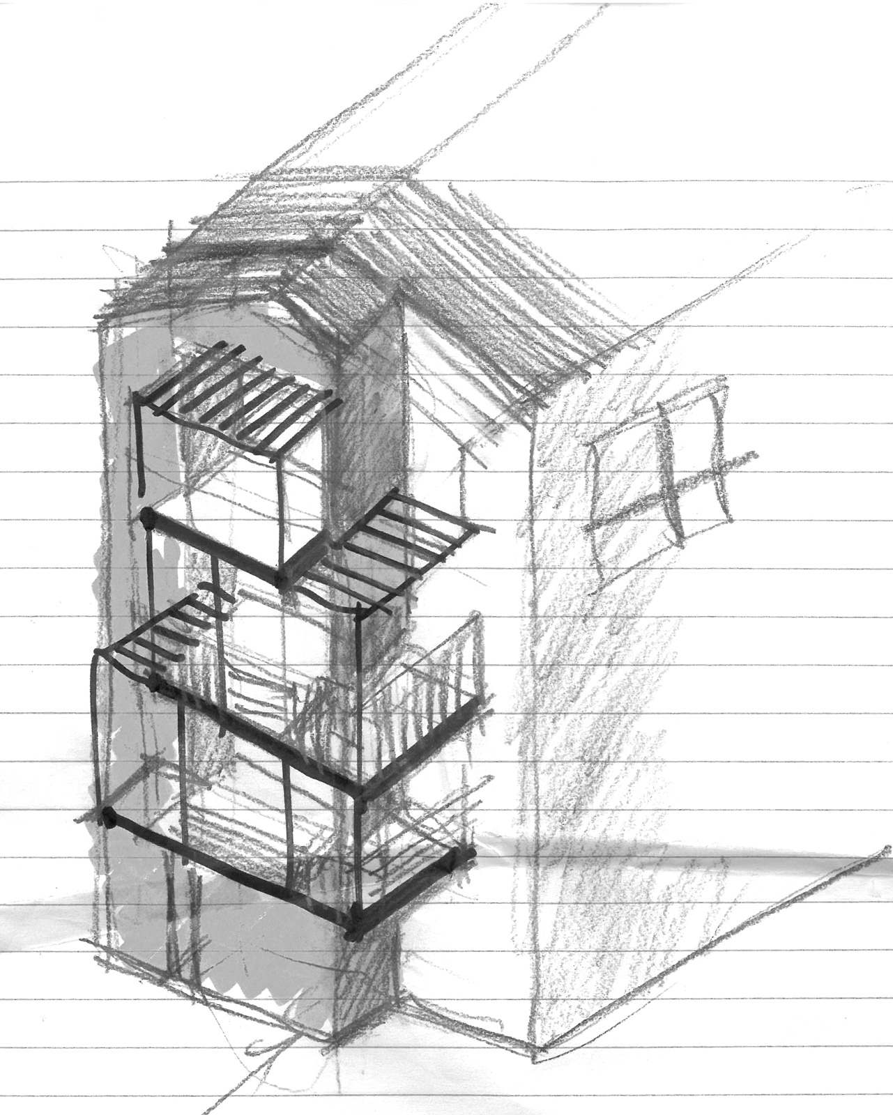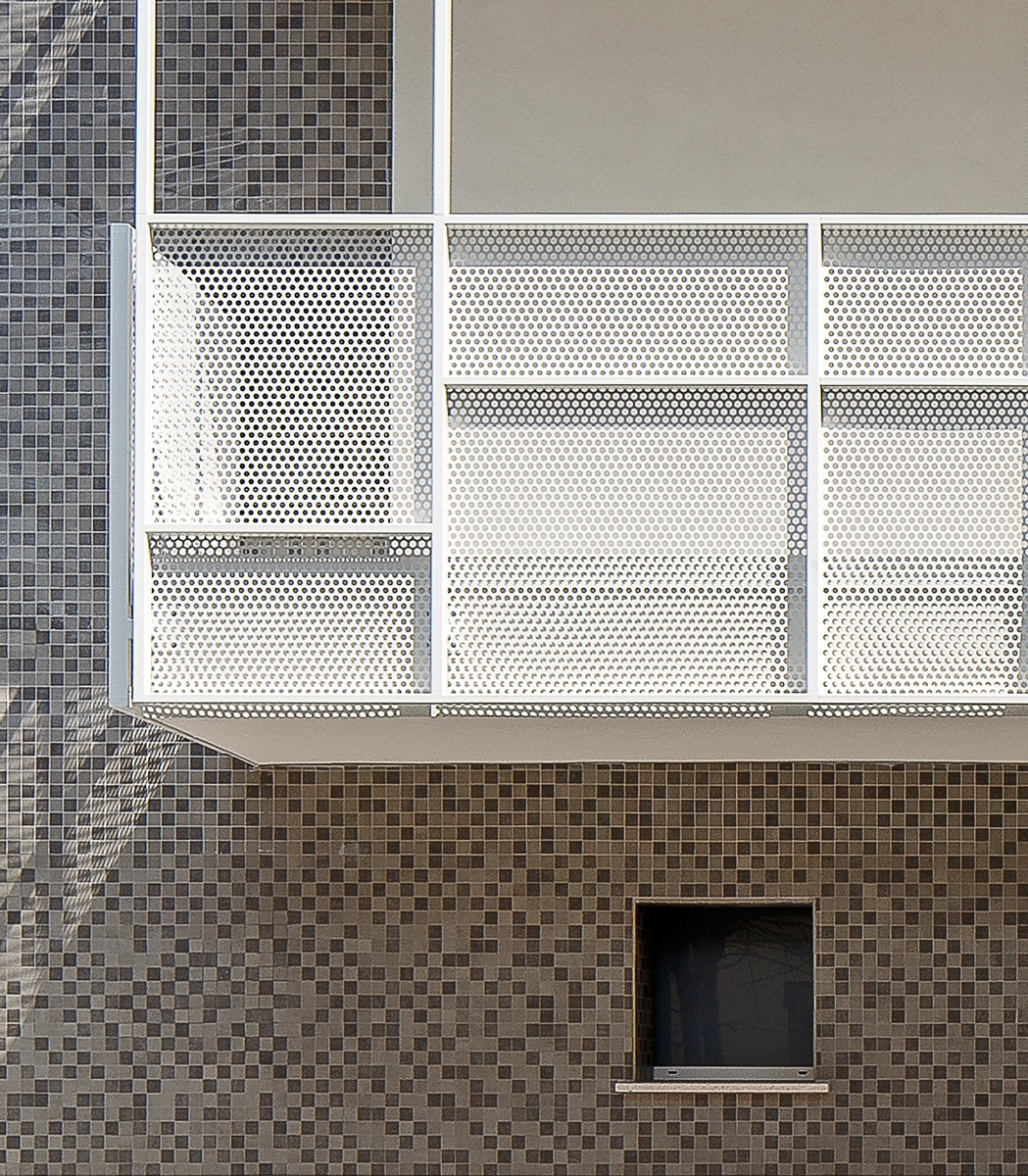 Sono stati realizzati sul fronte di Via Menotti ai piani primo, secondo e terzo, dei nuovi balconi caratterizzati da montanti verticali coronati da una struttura in ferro aperta superiormente. Alludono alla “maschera urbana” in grado di creare una nuova identità pur lasciando intravedere gli spazi retrostanti.