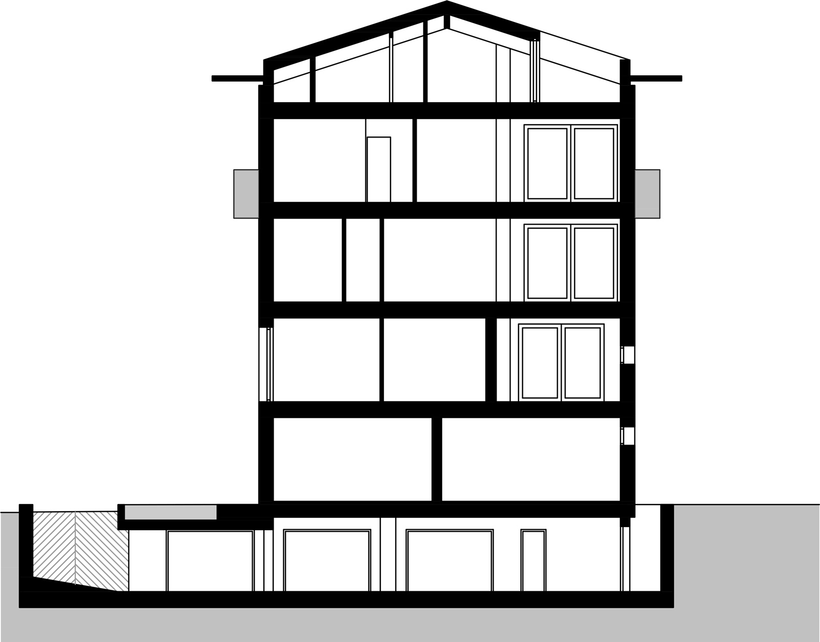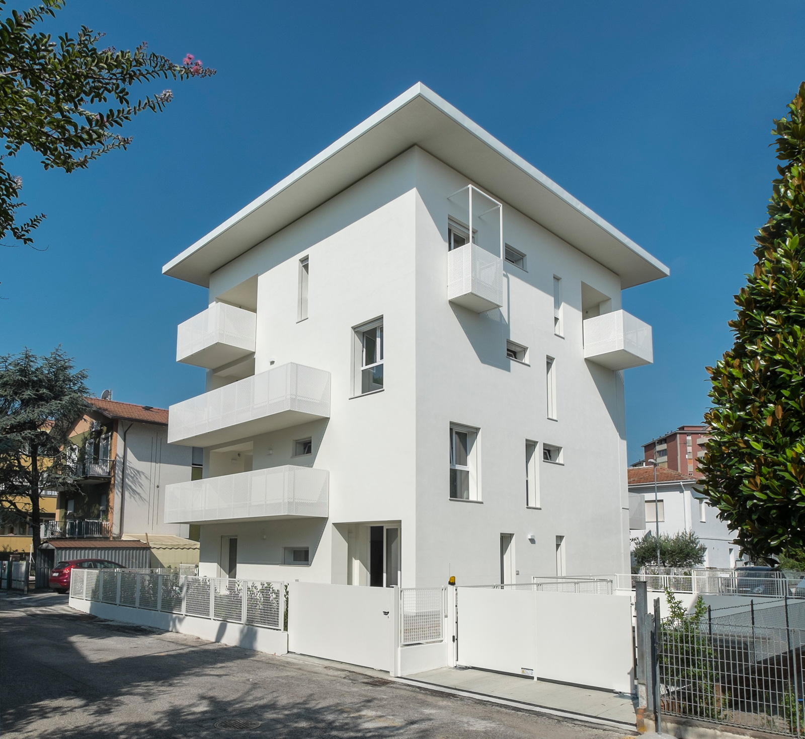 L’intervento progettuale ha comportato la completa demolizione del fabbricato preesistente ad uso civile abitazione e la costruzione di un nuovo edificio residenziale, utilizzando la stessa superficie lorda. Questo è formato da una piano interrato ad uso garages e posti auto, da quattro piani fuori terra ad uso civile abitazione e da un sottotetto accessibile.