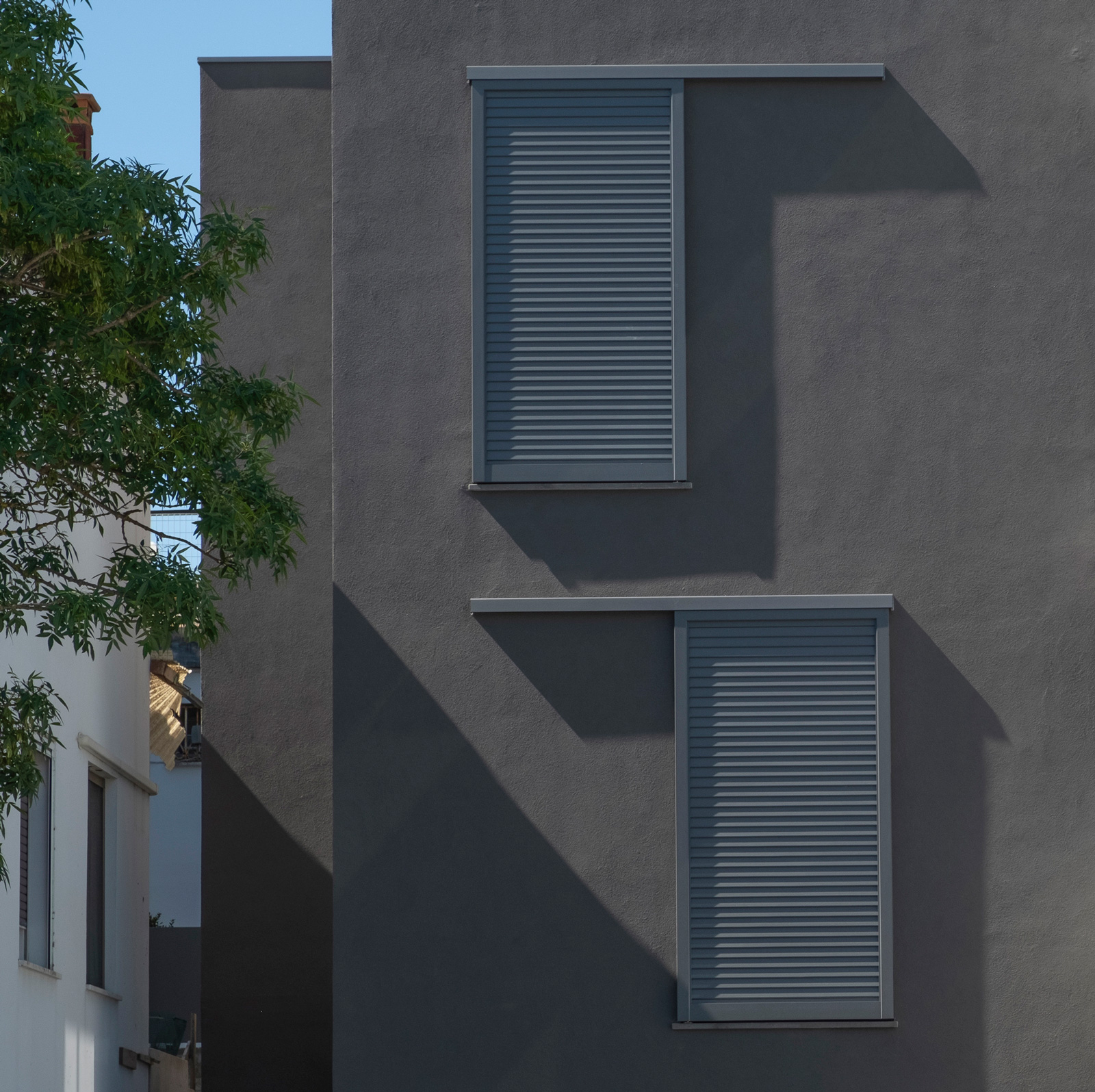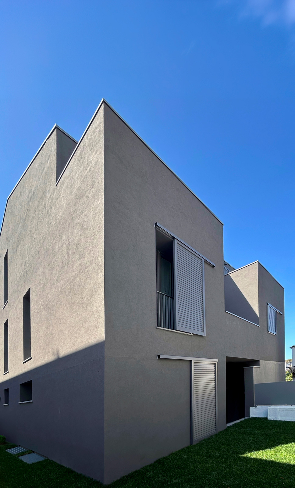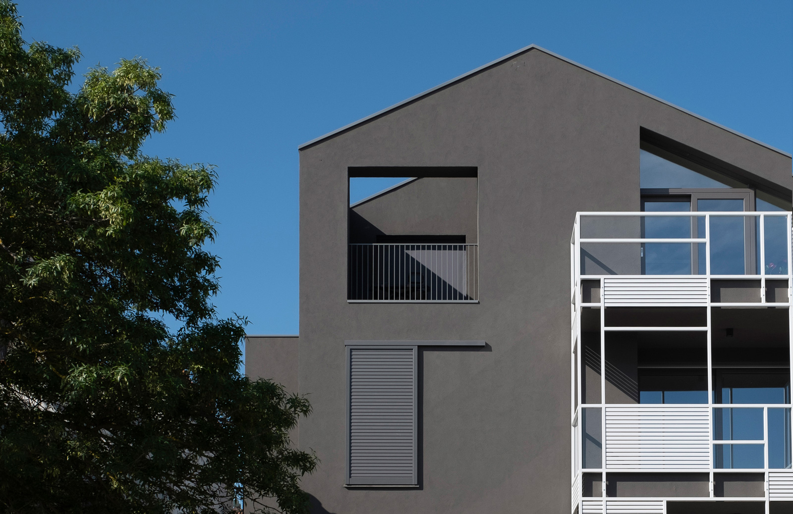 Esternamente il fabbricato è stato caratterizzato da un intonaco a tinta grigio scura.