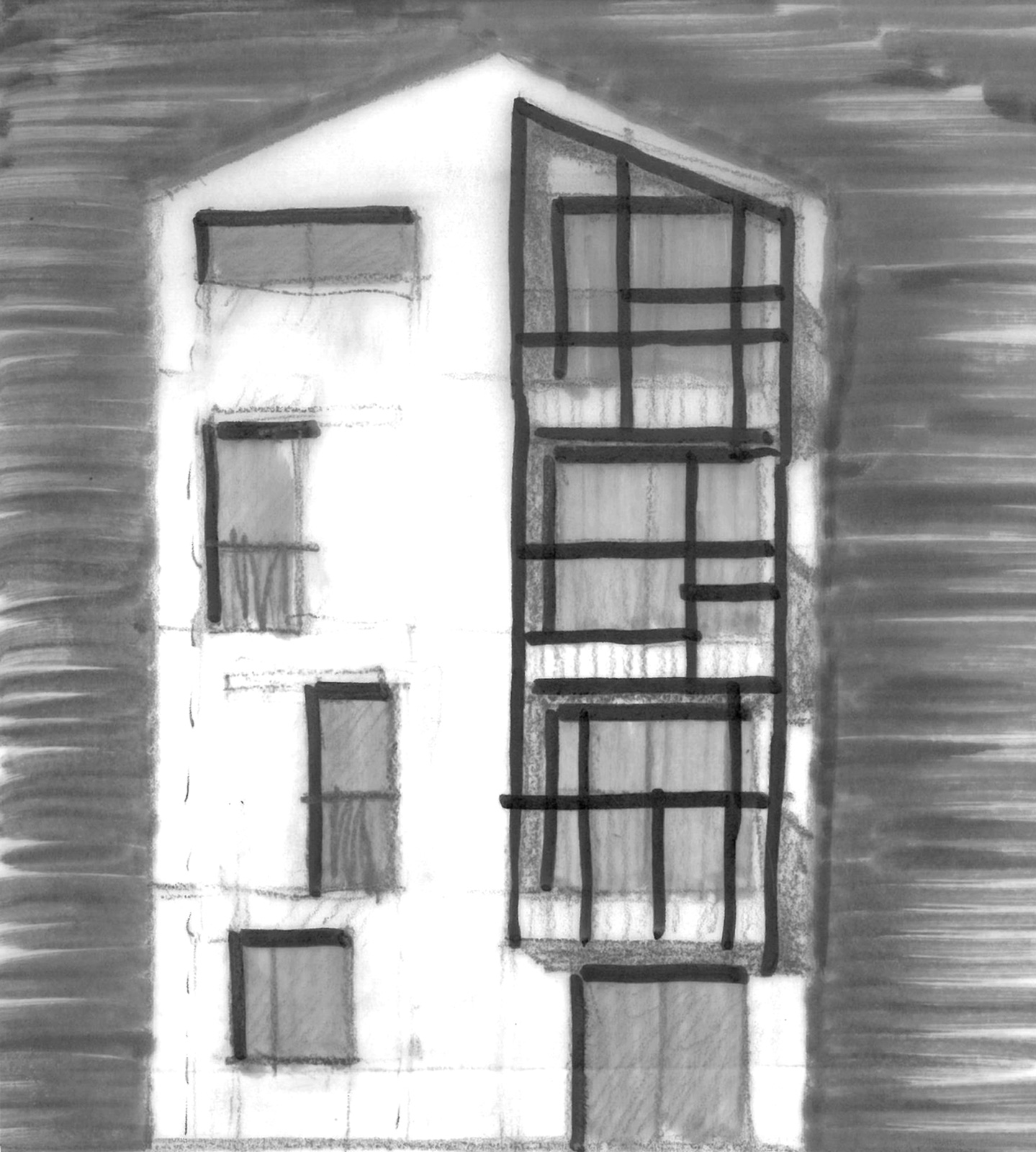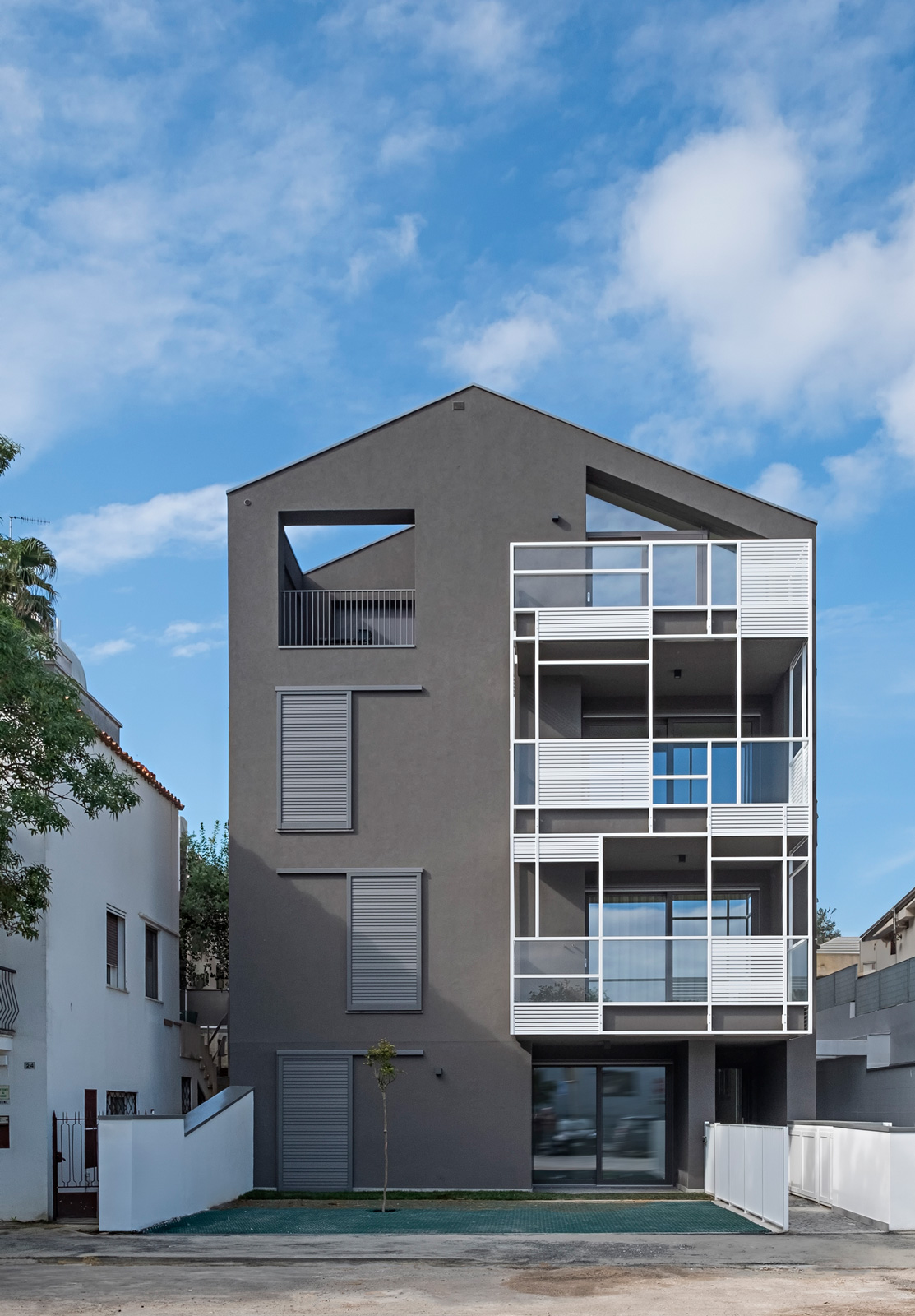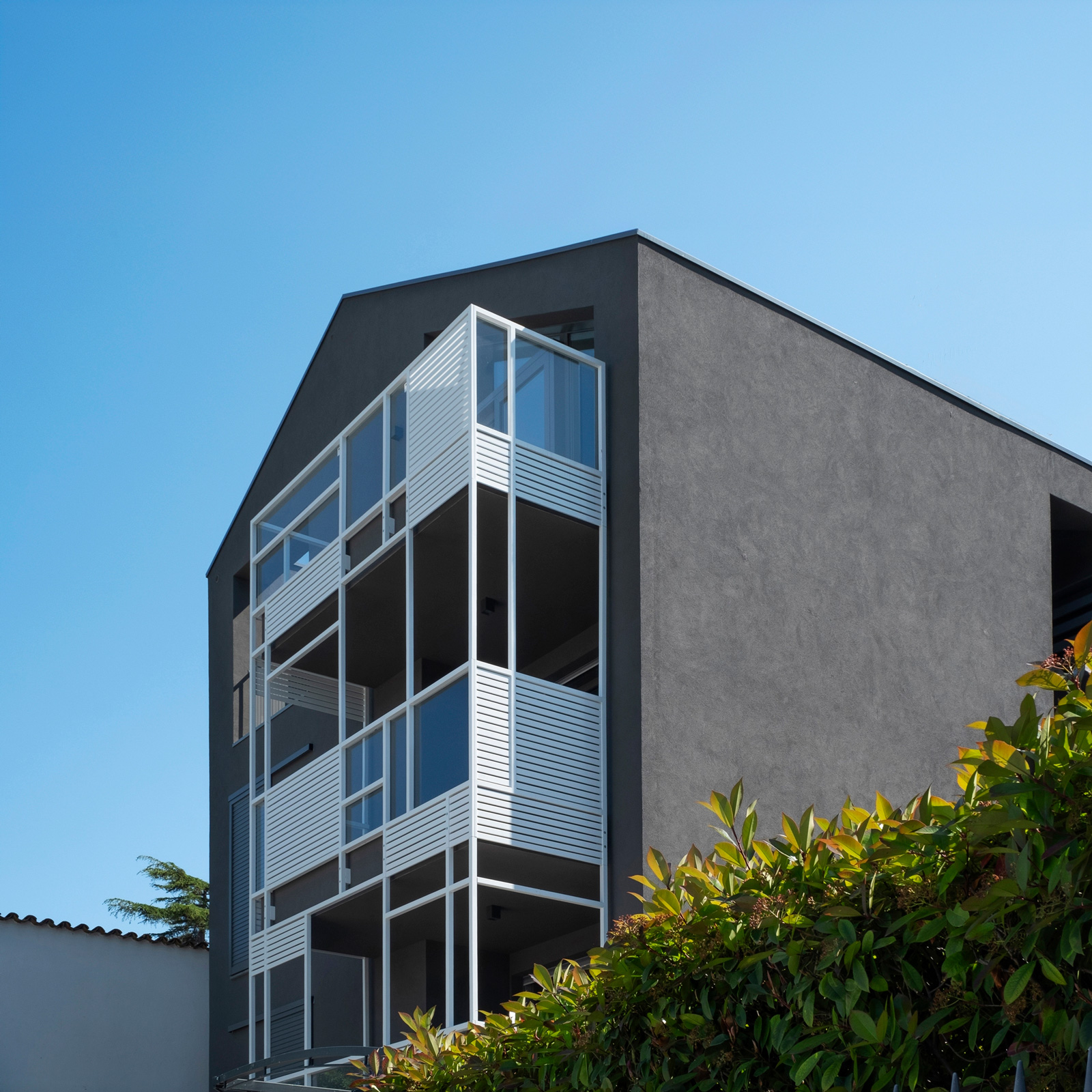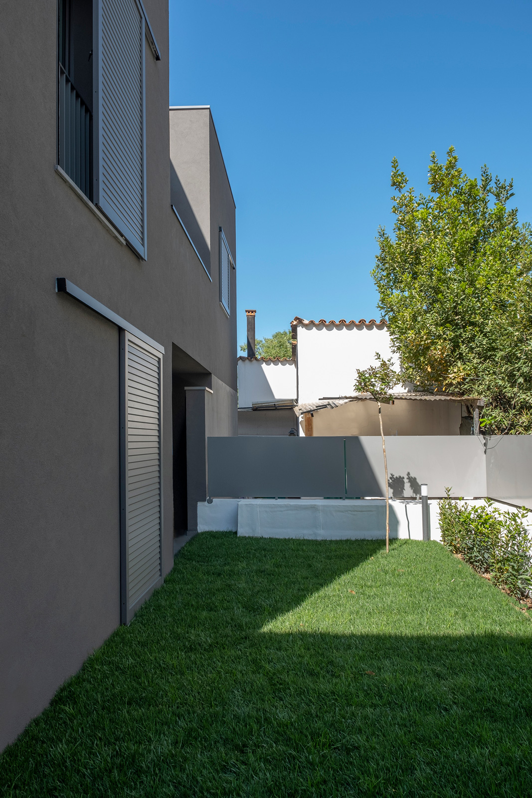 Esternamente il fabbricato è stato caratterizzato da un intonaco a tinta grigio scura.