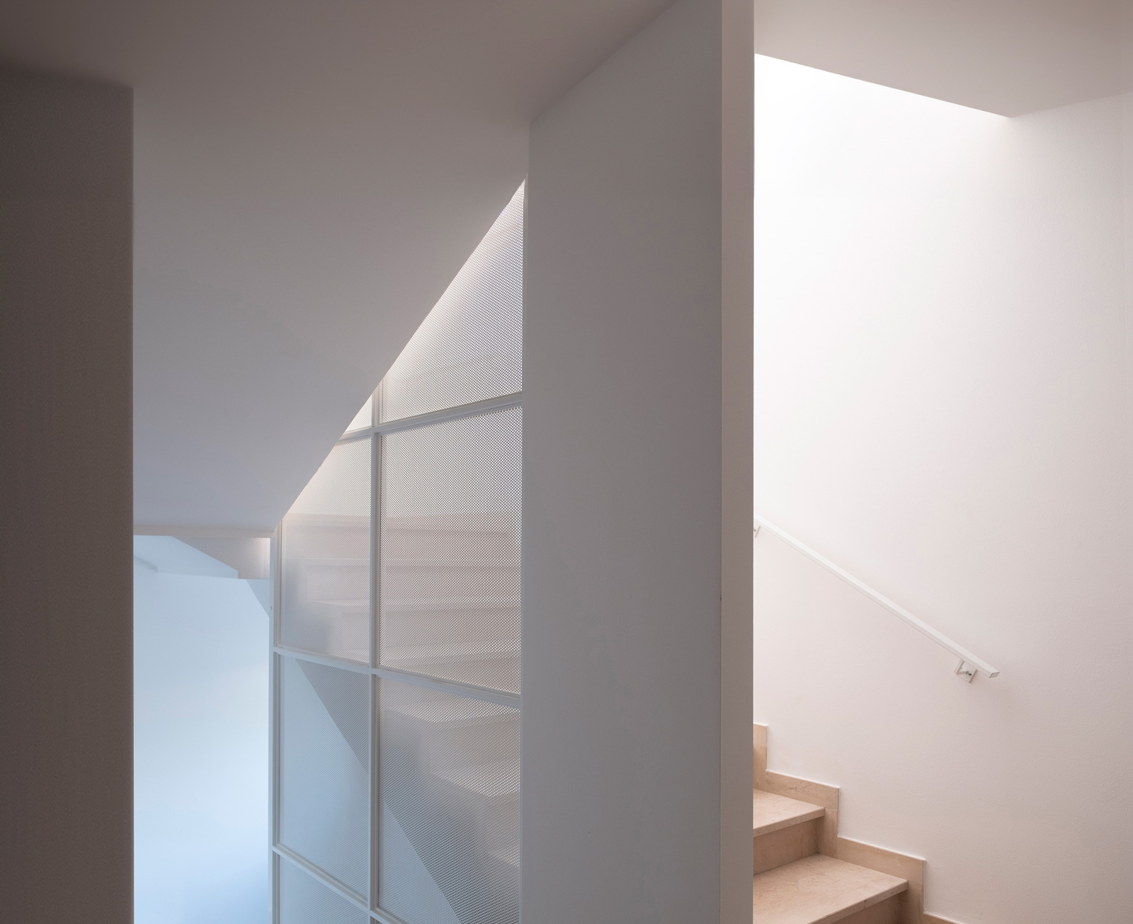 Sul solaio di copertura è stato realizzato un lucernario in falda al fine di ottimizzare la luce diurna nel vano scala; sul manto di copertura sono presente i necessari pannelli fotovoltaici necessari all’efficientamento energetico previsto dalla normativa vigente.