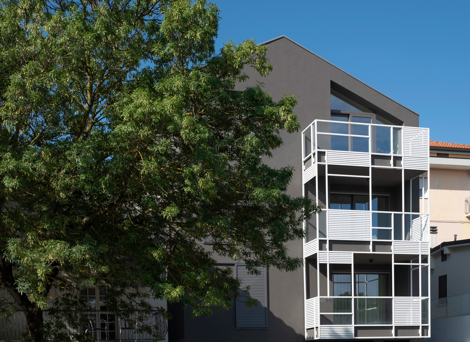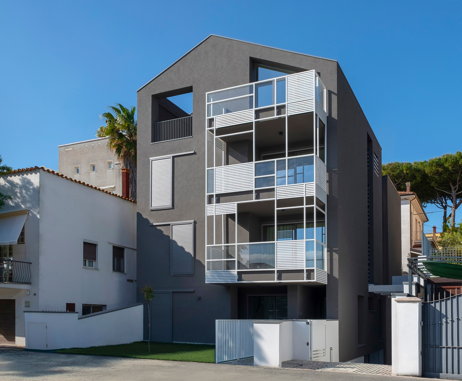 Il progetto è nato dalla demolizione del preesistente edificio alberghiero, risalente agli anni ’70, e dalla successiva ricostruzione di un nuovo fabbricato ad uso residenziale comprendente 6 unità abitative.