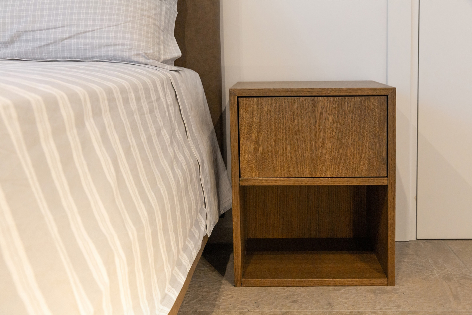 Tutti gli arredi sono progettati su misura, pensati per quel luogo e realizzati da artigiani locali, così come i tendaggi ed i componenti di illuminazione.